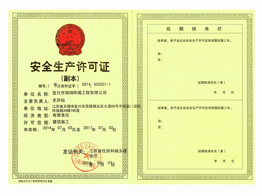 Credit CodeIn the future, Haina environment will grasp the great opportunity for the vigorous development of China's environmental protection industry, and focus on the technology of dust removal, desulfurization, denitrification and denitrification of all kinds of flue gas around its own technical advantages, scale advantages and management advantages. Continue to strengthen the R & D strength, especially the research on the depth and breadth of the purification and treatment of industrial waste gas, constantly improving the rate of exhaust gas purification and increasing the added value of the derivative products. At the same time, we should pay attention to the deployment of market structure, industrial structure and product combination, continuously improve the core competitiveness through the continuous innovation of technology, product and business model, and strive to create a modern, scientific, technological, scale and international leading environment enterprise.