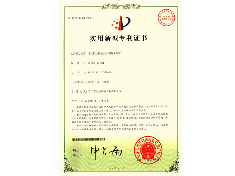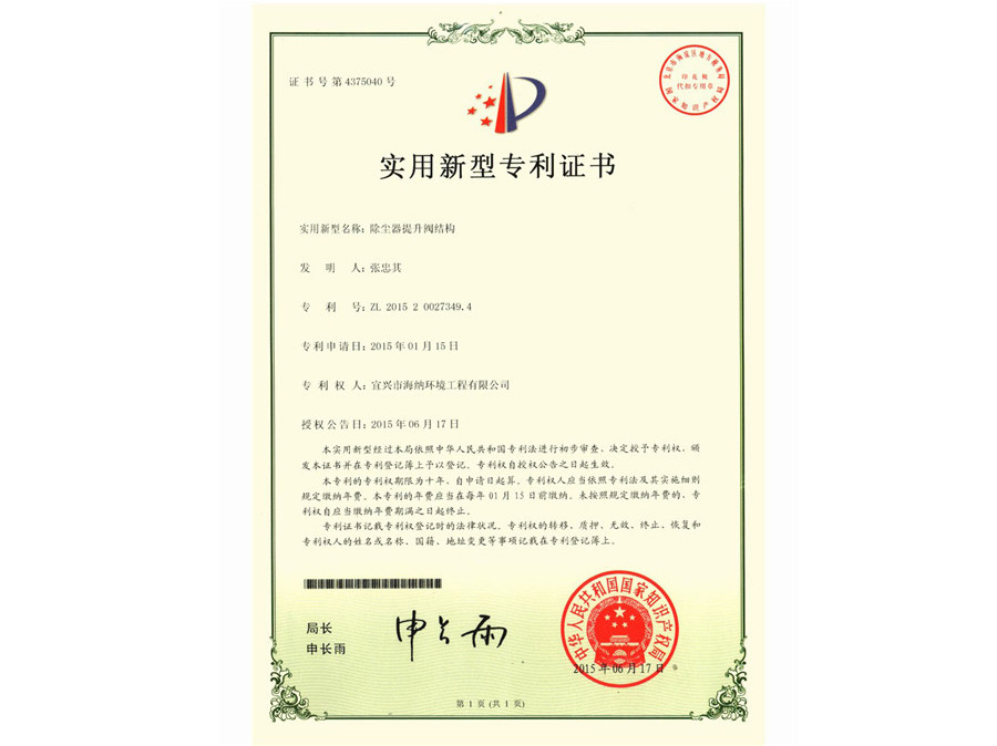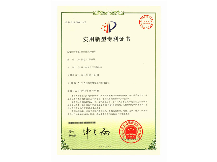 Patent certificate 1
